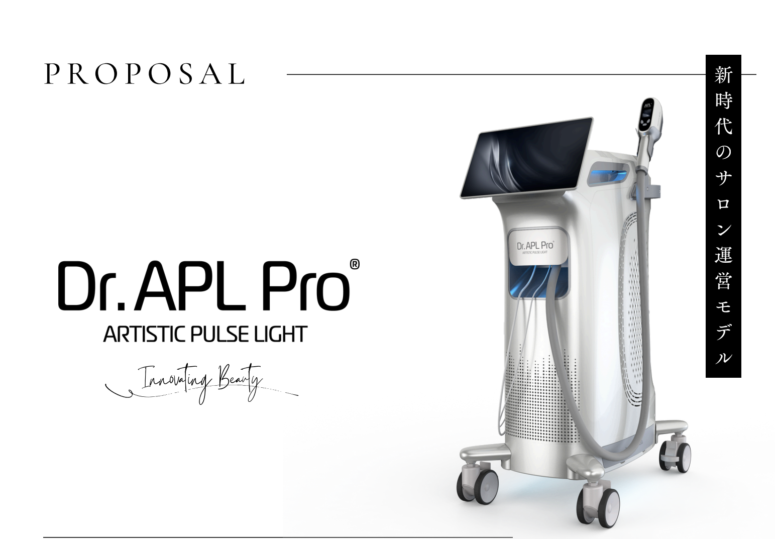 また、脱毛業界に新たな新風を巻き起こすAI脱毛機「Dr.APL PRO」を新発売。サロン導入の負担を極限にまで下げ、従量課金性とすることで、使った分だけ請求されるという画期的なビジネスモデルの新型脱毛器です。